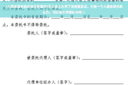 入团志愿书不是在自己手里,而是由组织上保存。入团志愿书本人填写,并写上团支部大会讨论其入团问题的决议,再由上级团委写上审批意见,批准入团后,就先由团委保管,后再并入本人的人事档案。如本人调动,由组织上转至新的工作或学习单位。