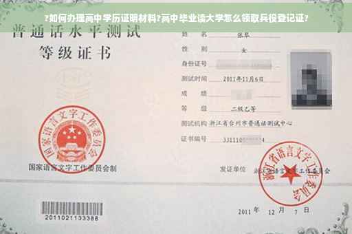兵役登记证是指年龄在18至24岁的男性和大一新生,报到时必须要按校方要求提交的兵役登记情况证明。否则,学校将不予办理入学手续。此举旨在进一步摸清全国兵役登记情况,为今后改变兵源结构做好准备。在陕西省,秋季入学报到的陕西省籍大学新生和正在高中阶段学习且符合服兵役的学生,入学必须携带兵役登记证,否则不予办理入学手续。根据《中华人民共和国兵役法》第十三条 国家实行兵役登记制度。每年十二月三十一日以前年满十八周岁的男性公民,都应当在当年六月三十日以前,按照县、自治县、市、市辖区的兵役机关的安排,进行兵役登记。经兵役登记并初步审查合格的,称应征公民。上学校取高中毕业证时。主要我们把大学录取通知书和一些和自己相关的证件。比如身份证原件及复印件。户口本原件及复印件等等。交给学校就可以了。只要你会考成绩全部及格。考试各科成绩全部及格。体育合格者。准予毕业。