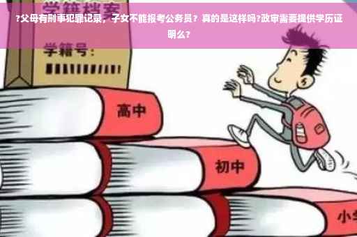 父母有刑事犯罪记录,子女肯定是不能报考公务员的。我二叔曾因故打伤了人判了两年有期徒刑,我二叔家弟弟大学毕业后想考公务员,需要父母无违法违纪证明,开不出来,报不上名!不仅犯罪记录,有一些严重违法违纪记录也不行,比如信邪教、被行政拘留等等。不仅考公务员不行,当兵也不行的!