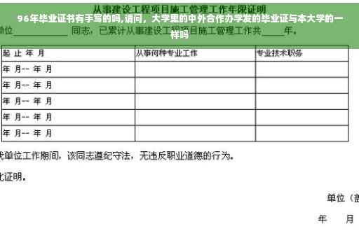 96年的毕业证书也都是电子打印的,不可能是手写的,手写的都是无效的,或者说是那些不正规的学校,因为对于正规的毕业证书来说,不仅是电子打印还有防伪标识,除此之外在证书上还有学校的图章钢印等所有的信息,手写的这些证书都是不被认可的。