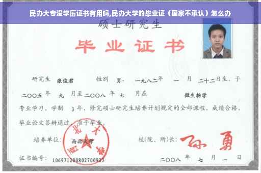 大企业和公务员的话肯定不行,私企就有用。2.发个毕业证书给你是证明你在次学校已经毕业了,不能证明什么,所以说不违法。3.要找正式工作(比如说公务员之类的)肯定得从新找一所国家承认学历的学校从读。不是所有民办高校的学历证书国家都不承认。