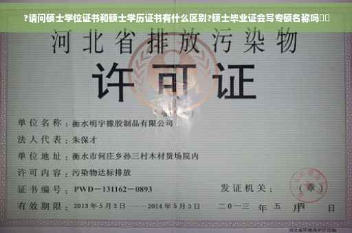 硕士学位证,代表达到申请硕士学位的要求,并通过硕士答辩,获得硕士学位。并不代表有研究生的学习经历。 硕士学历证,即硕士毕业证,证明有过硕士研究生的学习经历。 区别是: 全日制硕士研究生毕业后 有硕士学位证和硕士学历证。 在职硕士研究生毕业 只有 硕士学位证,但不能获得硕士学历证。 预祝成功!