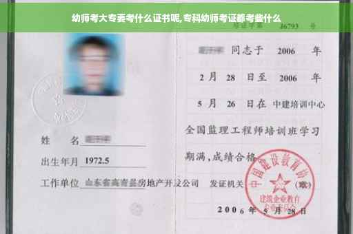大家好,关于幼师考大专要考什么证书的问题,于是小编就整理了4个相关介绍幼师考大专要考什么证书的解答,让我们一起看看吧。