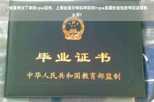 CPA是专业技术职称,不是学历证明,所以,考试通过后不会显示学历与院校;CPA考试只要求拥有大学专科及其以上学历报考,如果你从事这方面的工作几年或者有中级会计职称也可以考试。我目前也在参加CPA的考试。所以比较了解,如果还有什么不懂的,可以咨询。