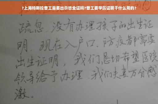 上海特斯拉普工工作也是需要出示毕业证的,基本上你在大厂工作,人事方面都会要了解你的学历证明,包括你的档案资,因此有了你的毕业证的话,无论你是什么学历的?对于你今后的升值或者工作上面的变动都会有很大的帮助,所以说在特斯拉工作也是需要出示毕业证的