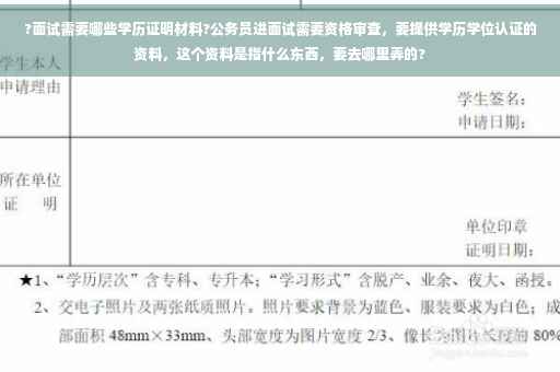 我也是今年公考进面,题主未说明自己是否是应届毕业生,那么我从两个情况来答: 已经毕业的,资料有学位证,毕业证书和在学信网上注册并打印的学籍证明(这个需要缴纳1块钱)以及准考证, 对于尚未发放毕业证、学位证书的高校毕业生由学校教务部门出具相关证明,具体你可以主动联系自己的导员具体了解,导员对于这些东西是再熟悉不过的,这样比较可靠。