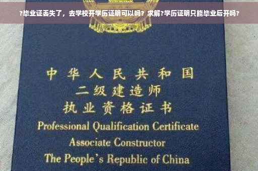 “高等学校毕业生在取得毕业证书后,应按照《教育部高校学生处关于处理丢失毕业证书的办法》(教务司字057号)的规定“高等学校毕业生遗失毕业证书后,由本人向原毕业学校申请,学校查有实据者可以开具‘毕业证明书’,不能补发毕业证书。