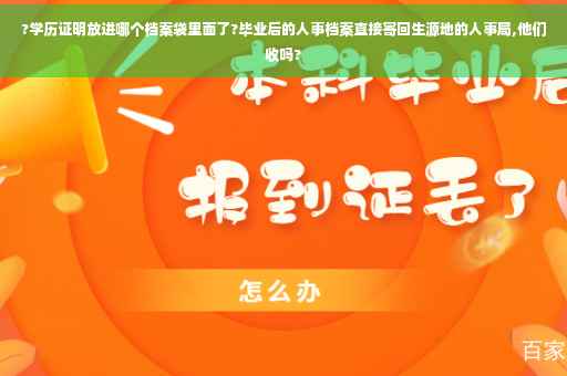 其实,一般情况下,你报道证实开到市人事局,但是档案的话,有的是给你自己带回去,有的是学校给你寄回去,档案寄给人才中心是不会丢的。只不过报到地址,都是去人才中心,人才中心有一个大中专毕业生就业指导办公室,要想不麻烦档案到了之后最好去人才中心办个人事代理,这样的话,以后需要档案时也方便。人事代理可以帮你身份认定、转正定级、工龄计算和档案工资记载,代交保险,出各种关于档案的证明拉盖章了,还有帮你评定职称和和关于职称的考试啦,档案的调动啦,如果考事业单位最好办人事代理,这对你以后很有好处,很多地方的公务员事业单位都是人事代理 人事代理,对于刚毕业的学生来可能不太明白这到底是干什么的,甚至有些毕业了好几年也不懂。一般都认为档案没有用,所以都扔那不管它,但是一到用着的时候就会着急了1、毕业生毕业后,在其学籍档案中放入该毕业生的报到证,然后由学校将档案转交毕业生就业单位的人事部门或委托的人才交流机构,这份档案才转成人事档案(这期间档案在工作单位或者人才交流中心或者挂靠在代理托管机构)。