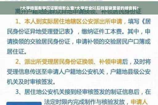 档案袋里主要装着高中阶段和大学阶段的经历,具体包括个人简历、工作履历表、学生档案(包括学历档案)、单位证明、政治面貌材料(例如党员材料)等。