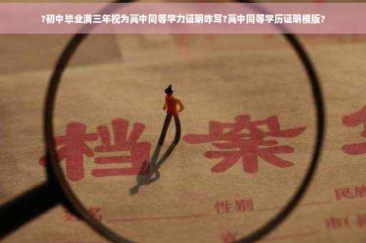 初中毕业满三年,不能视为高中同等学历。因为你并没有真正的读过高中。等同于高中学历的只有中专,技校和职高。你没有读高中,是不能开具同等学历证明的。在我国只有考研究生的时候,专科毕业三年视为同等学历。这只是报考研究生的一个条件,并不代表专科学历,就是同等的本科学历。所以你初中毕业是不可能没经过高中教育就能拿到同等学历或高中毕业证的。