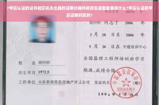 证书验印机关出具的证明扫描件,就是毕业院校出具的学历证明,证明还需要提供证明老师签名和留下固定办公电话。 招生录取底册和毕业证验印底册这些都是要到毕业学校档案馆或者是学籍管理处能够提供的东西。 现在学历认证可以直接在鉴证网上办理,鉴证网会提供相应的认证、咨询服务的。