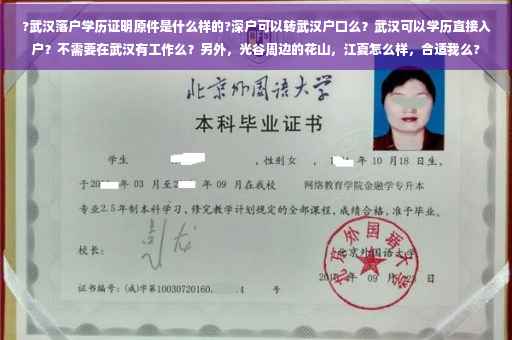 深户可以落户武汉,若是学历落户,办理条件是:经过教育部认证的高等学校专科及以上学历或学位的毕业生,包含留学回国人员,年龄不满45周岁的毕业生,博士研究生、硕士研究生不受年龄限制;此外毕业生的配偶和未成年子女也可以随迁落户。