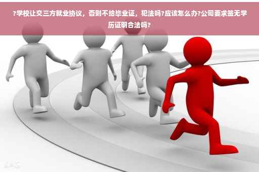 正常程序来说,就业协议的签订代表你已经找到了工作单位,和毕业证没有挂钩,但是有的学校可能为了提高就业率,不给学生发毕业证,这样是不合法的。因此不交就业协议书也能拿毕业证。就业协议书是国家为了统计大学毕业生就业率的,因为学校不颁发毕业证,就不算正式毕业生。有的学校因为有就业率压力所以会有这种要求。从法律的角度来说已经属于违法行为,可以申请法律帮助。当然如果能想办法得到任意的公司盖章证明你有工作了,也可以找学校协商拿毕业证。一般正常毕业生都应该拿到毕业证书,无论有没有就业协议。