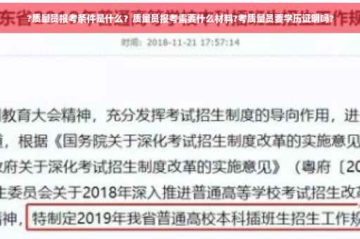 质量员是八大员中的一个,也是上岗证。许多准备报考质量员的朋友都在问,质量员的报考条件是什么,以及质量员报考需要哪些材料。因此今天小编就来告诉大家答案,下面就一起来看看吧: