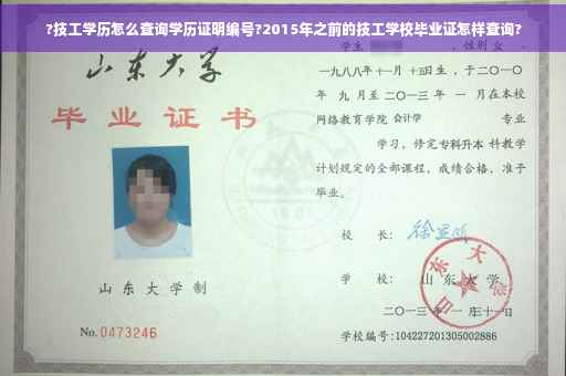 2015年之前的技工学校毕业证查询方法:全国技工院校毕业证书查询系统:这个系统可以查询2015年.cn/jxxxcx/Omp.do?method=fwdPageJgyxCertInfoEntry` 输入相关的证件号码、证书编号、姓名等信息进行查询。