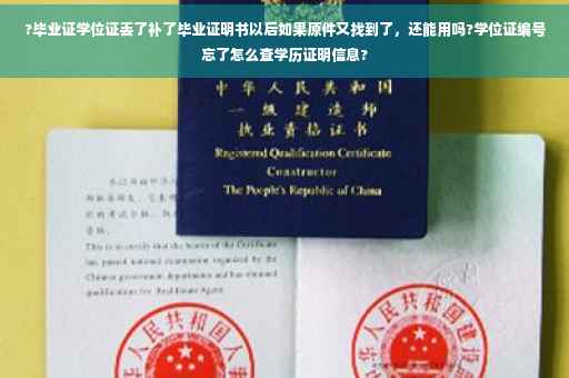 ”教育部明文规定,毕业证和学位证不能补。据悉,目前只能到原毕业高校开具“毕业证明书”和“学历证明”。根据《普通高等学校学生管理规定》(2005年教育部令第21号)第三十九条规定:“毕业、结业、肄业证书和学位证书遗失或者损坏,经本人申请,学校核实后应当出具相应的证明书。证明书与原证书具有同等效力。”学位证书编号和学历证书编号是不一样的,学历和学位是不同的,证书编号自然也不会相同。