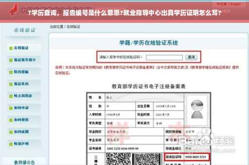 在认证报告右上角有7个红色的数字就是报告编号。也就是说报告编号指的是全国高等学校学生信息咨询与就业指导中心(教育部学历认证中心)根据用户学历认证需求,经审核后出具的学历证明,并对报告进行电子注册,提供网上查询。