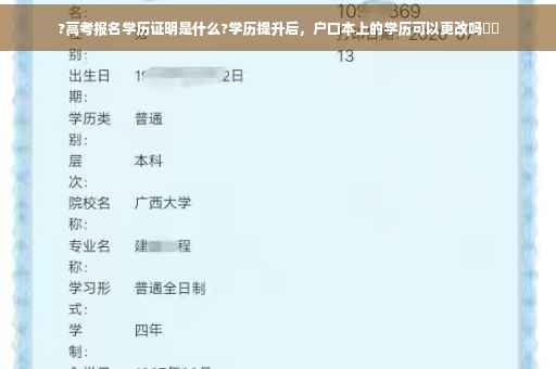 学历提升后,户口本上的学历是不可以更改的,一般单位也不会看你户口本上的学历。因为你如果没有迁过户口,你的学历写的从未上学。所以说改的话意义不大。现在你的学历从学信网都能查询的到,所以不用担心。