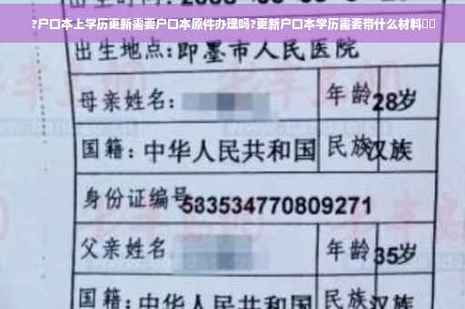 户口本上学历更新一般需要户口本原件作为办理材料。因为户口本是个人身份证明的一部分,其中包含了个人的基本信息和学历记录等重要信息。