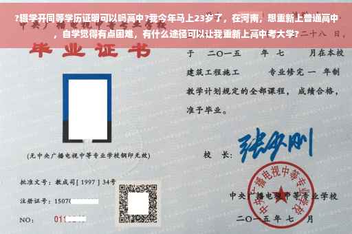 如果是通过自己自学,或者上职业学校等办法,或许有可能。一些地方的职业学校规定也比较严格,可能在一些地区也有相关的年龄限制,当然,如果你通过自学去考大学,那没有任何年龄限制,不管多大都可以,至于你要通过上高中或者是职业学校一类的学校,应该到当地的教育部门去问清楚相关政策,网上可以给你提供的信息可能不多,这跟各个地方的政策相关。
