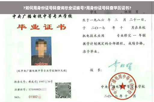 一般情况下,身份证号码与毕业证编号并没有直接的关联。如果需要查询毕业证编号,可以尝试以下方法: