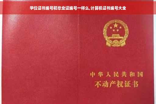 学历证书编号和学位证书编号不一样。 现在的毕业证和学位证后面几位数字都是电脑随机产生的编码,毕业证是毕业证编码,学位证是学位证编码,二者肯定不一样的,后面的顺序也没有什么规律可循。 学历证书是学制系统内实施学历教育的学校或者其他教育机构,对完成了学制系统内一定教育阶段的学习任务的受教育者所颁发的文凭。
