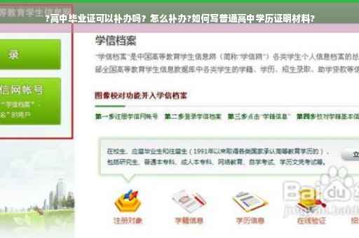 3、到所在地教育局基础教育科开具学历证明。1996年后毕业的普通高中学生,按此办法办理;1995年前毕业的学生,由于未实行学籍电脑化管理,因此由原学校开具学历证明。扩展资料:《普通高等学校学生管理规定》第三十九条明确规定:“毕业、结业、肄业证书和学位证书遗失或者损坏,经本人申请,学校核实后应当出具相应的证明书。证明书与原证书具有同等效力。”这是针对高等学校离校学生学历证书遗失或者损坏后的善后处理规定,适用于各级各类高等学校离校学生。学生本人向原毕业学校申请,学校查实后,可出具相应的“学历证明书”。学历证明书的式样要与原学历证书具有同等式样和质量,名称应明确为“高等学校毕(或结、肄)业证明书”,填写内容与原学历证书基本相同,包括学习时间、学历层次、专业等,贴本人免冠相片,盖学校印章及编号。证明书应注明原学历证书编号和“因证书遗失,特补此证,以兹证明”相关字样,由学校现任校长具名签发并在中国高等教育学生信息网进行电子标注,以备核查,同时对注册的原学历证书标明遗失作废。高等教育学历证明书与原学历证书具有同等效力。在升学、就业及职务晋升等过程中,需要使用学历证书的,招考、用人单位或其他需要验证单位,应将学历证明书与学历证书同等对待。