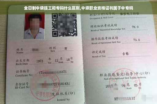 全日制中级技工和专科的区别在于一个是中专,一个是大专。