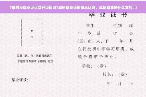 单招毕业证书是指通过教育部或各省市招考的成人高中与国际双样本等特殊学历招生考试(简称“单招”)而得到的证书,持有者可与普通高中毕业生享有同等的学术资格和权利。