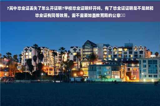 需要去市教育局盖章,证明格式如下: 按照省教育厅规定,高中毕业证丢失、损坏一律不予补办,不能补发,只发学历证明。 如需毕业信息等相关证明,可联系就读的高中学校给予开具。向毕业学校提出学历证明的申请,其与毕业证书有同等效用。证明的书面申请必须有市教育局的公章。