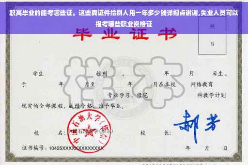 职高毕业证在级别上相当于高中学历,高中学历能考的证还是比较少的,一般的都会要求大专以上学历,高中学历能考的也就是会计证、导游证、计算机等级证,如果是工程类专业的话也可以考二级建造师证。