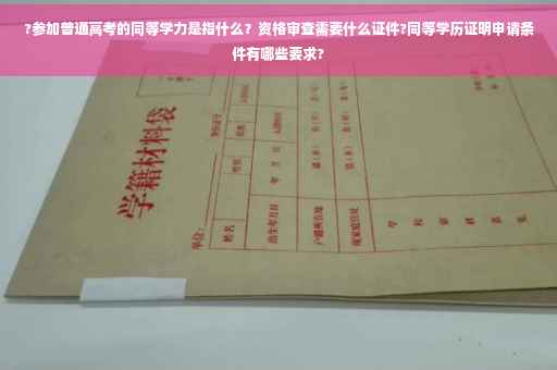 凡遵守中华人民共和国宪法和法律、具有高级中等教育学校毕业或具有同等学力、身体健康的人员,均可以申请普通高考报名。所谓同等学力就是所取得的学历达到普通高中水平!报名条件:持户口本、学籍证明等可在户口所在地、也可在学籍所在地报名。