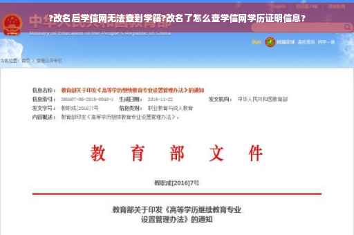 改名字后学信网不能改过来,改名的学生在校期间修改或变更身份信息的,因此,改名字后学信网不能改过来。根据教育部《普通高等学校学生管理规定》、《高等学校学生学籍学历电子注册办法》等文件规定,学历注册并提供网上查询后,学校不得变更证书内容以及注册信息,不再受理学生信息变更申请。