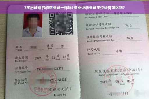 毕业证书是学校对毕业生即完成规定的学业任务,并达到合格标准的学生颁发的一种学历凭证。结业证书是学校对学生完成规定的学习课程,但是有部分课程并没有达到合格标准的学生颁发的一种学历凭证。