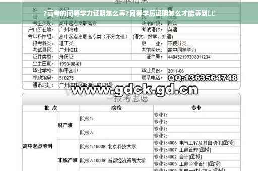 同等学历指具有与某级教育相同层次的学历或者获得同级教育但非同一学科、专业的毕 业 证书(包括相应的学位)。如:一般认为,我国中等专业学校或者职业高中的毕业生和普通高中毕业生具有同等学历。社会考生参加高 考流程1、亲自到县区高招办报名(一般为当地教育局)2、需要带上户口本、身 份 证以及同等学历证明(高中文 凭、中专文 凭或《学业水平测 试和格证》),履行填写手续。·在职干部和工人带学历证明及单位介绍信;·应安排工作而尚未安排的退伍、转业军人,须持(区)民 政 部门的证明一般是填写五种表:《报名登 记表》、《准考证》、《考生志愿表》、《考生志愿代码登 记表》及《考生卡片》,同等学历者还需填写《政 治思想品德考查表》。3、社会考生参加高 考跟普通高 考无区别, 区分文、理科4、报名时需上缴考 试费、《报考指导》费、体检费等全部费用。