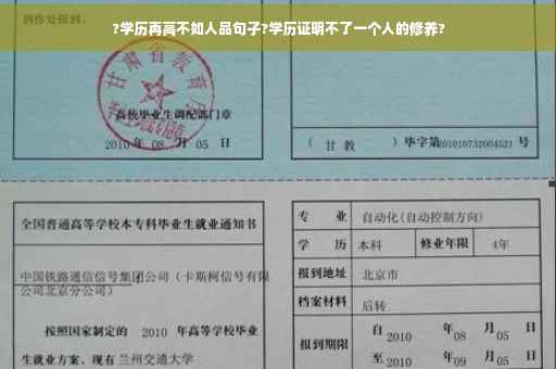 人离开了人品也就如同是个废人, 人品不好,学历再高,也是一张废纸。人品才是人生最高段位的学历,是人生最高的追求目标,自强不息,厚德载物。做人要做一个善良的人,做一个有德的人,人生有德才有得,这就是人生的辩证法和哲学观,做人不能只顾文凭而不顾人品,这就是顾此失彼。