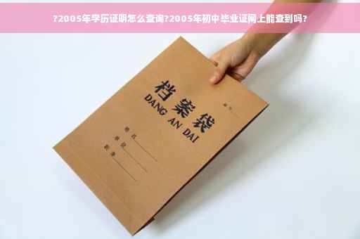 正常的情况下,2005年初中毕业在网上指定的官方网上是可以查询到的,如果查询不到可以到当初所属学校或是所在上学的学校进行查询,因为这样李的学校会有自己的存档和档案,在学校存储如果没有查到的话可以到教育局进行查询,一般情况下2005年的已经更新很难查到,在网上也不一定能查到。