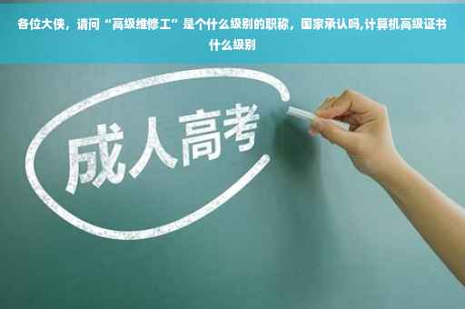 这个不属于职称 是职业技能等级证书,有计算机维修工 制冷设备维修工 汽车维修工等,国家分别制订了相应的考核标准,初级(五级)、中级(四级)、高级(三级)、技师(二级)、高级技师(二级),你说的高级维修工就是这个三级。一般现在找工作的话,最低要求都是中级、高级了。对具备这类技能证书的技工人员有相应的补贴标准、