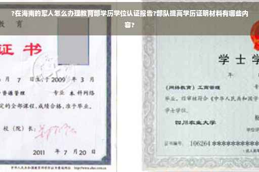 随着军校教育的发展,国家对军队军官士兵教育素质提升的要求,军校学历越来越多的在部队中推广,军校学历证书学历认证,除提供毕业证、身份证复印件外,军校普通高考入学的需要提供入学批准书、学校证明、军籍证明(转业证、军官证);参军后报考军校的需要提供入学批准书、入伍批准书、学校证明、军籍证明(转业证、军官证);军校成教函授学习需要提供入伍批准书、学校证明、军籍证明(转业证、军官证)。