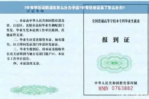 说一说中专毕业证丢了怎么补办的问题。这个问题是这样的:依照门国家教育部门的规定,中专毕业证丢了不能补办,可按规定程序(复印毕业证审批表,登报作废原毕业证书等等)要求办理中专学历证明书,并加盖公章和钢印,与毕业证效果相同。