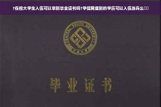 在校大学生去当兵后还可以拿到大学毕业证。大学期间当兵以后拿毕业证。一般来说,都得是退役后回到原学校继续完成学业,才能毕业 如果是大学最后一年只剩实习,去当兵,经学校认可,可以在服役期间与同届同学同步拿到毕业证。毕业证书: 毕业证书是做为学生毕业的凭证。学满学制规定的年限,完成教学计划规定的全部课程,各科成绩合格者的毕业证上有由全国统一的高等教育毕业证封皮页,获得毕业证书。毕业证书基本内容为姓名,性别,出生日期,毕业时间,学制,毕业专业,发证时间,电子注册号,学校校章,学校钢印,校长印等。