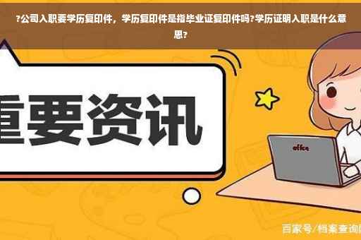 公司办理入职手续时,要求提供学历复印件。这个学历证书复印件不单指毕业证书复印件,也包括自己的学位证书复印件。也就是能够证明与你学历相关的一切证书的复印件都需要提供给用人单位,只有这样才能够证明你是通过完整的教育经历获得的毕业证书和学位证书。
