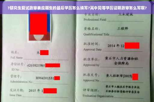 研究生复试政审表应届生的最后学历就填本科应届。 普通本科应届生考研以本科生身份报考,成人本科应届生以同等学力身份报考。应届生报名报考点验学生证,考上后,研究生新生开学的9月份,教育部验本科毕业证,没毕业证或毕业证弄虚作假立马取消研究生入学资格。