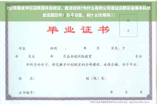 申请高新技术企业的公司,需要中高级人才达到一定的比例,员工毕业证即是证明资料之一。当你知道自己已经获得了这个职位,公司需要将你的本科毕业证复印件作为档案留底。
