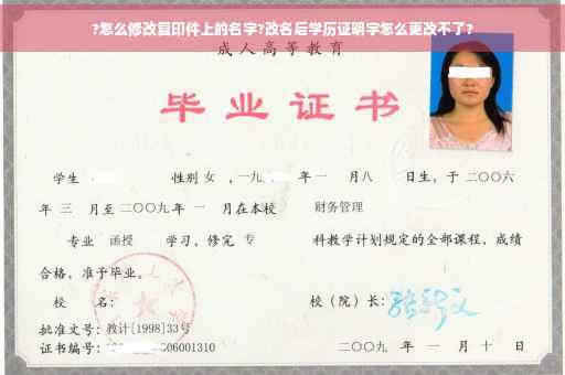 4、已经大学毕业的话,毕业证就只能是原来那个名字,毕业证是不可能改的,甚至可以说以前发的大部分证书都改不了,只能在需要用毕业证的场合再附一份公安局出示的改名字说明,所以,如不是必须的话最好别改。