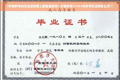 学历认证可以到学信网上查询,也可以拿着自己的毕业证到省教育厅去出认证报告的,不过那个一般要等一周左右才能拿到,如果你是1995年毕业的,那么不管你是大学本科还是专科毕业的,毕业了以后你如果要到哪个地方参加工作,需要开一个学历证明的话。