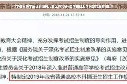 因为在上学时未完成照片采集工作,从而影响了学历网上资料照片情况。 在上大学时,每人需要进行完成照片采集工作,需要将其录入毕业电子注册中,也就是往后科学历资料展示照片,若大学时没有完成照片采集,则学信网上资料也就没有照片。 若有没有照片情况,可以和学信网进行联系补办。