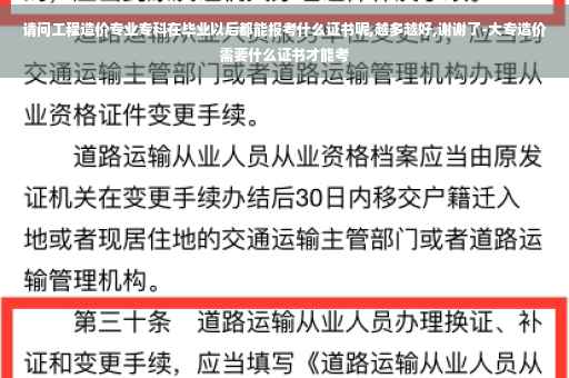 大家好,关于大专造价需要什么证书的问题,于是小编就整理了5个相关介绍大专造价需要什么证书的解答,让我们一起看看吧。