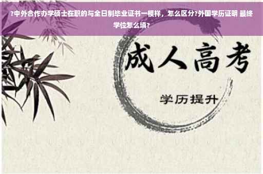 首先,区分中外合作办学的形式。中外合作办学按照学历形式分为学历教育和非学历教育。学历教育类中外合作办学不管其学制形式如何,学生按照要求修够学分都会获得相应的硕士学位证书,国外学历不论是在职还是全职都只颁发学位证书,没有学历证书。国内在职和全日制的根本区别就是有无学历证书。非学历教育类的也就是培训类的合作办学,不管是形式和学制如何,达到要求后只有培训经历证明不颁发学位和学历证书。特别注意,学历证书和培训证明不同,在国外培训经历和受教育经历几乎同等重要。