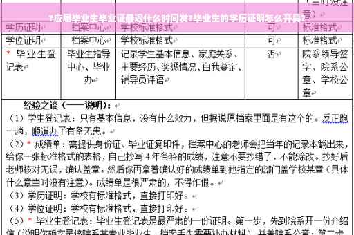 1、普通全日制本科毕业大学本科毕业证一般都6月份毕业,毕业证一般在6月中下旬或7月上旬颁发,一般会在高校毕业典礼之后颁发证书,但会在学生离校之前颁发证书。各校颁发文凭时间不是统一安排的。